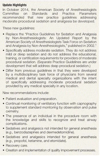 Practice Guidelines for Moderate Procedural Sedation and Analgesia 2018: A Report by the American Society of Anesthesiologists Task Force on Moderate Procedural Sedation and Analgesia, the American Association of Oral and Maxillofacial Surgeons, American College of Radiology, American Dental Association, American Society of Dentist Anesthesiologists, and Society of Interventional Radiology. Anesthesiology. 2018 Jan 15. [Epub ahead of print]